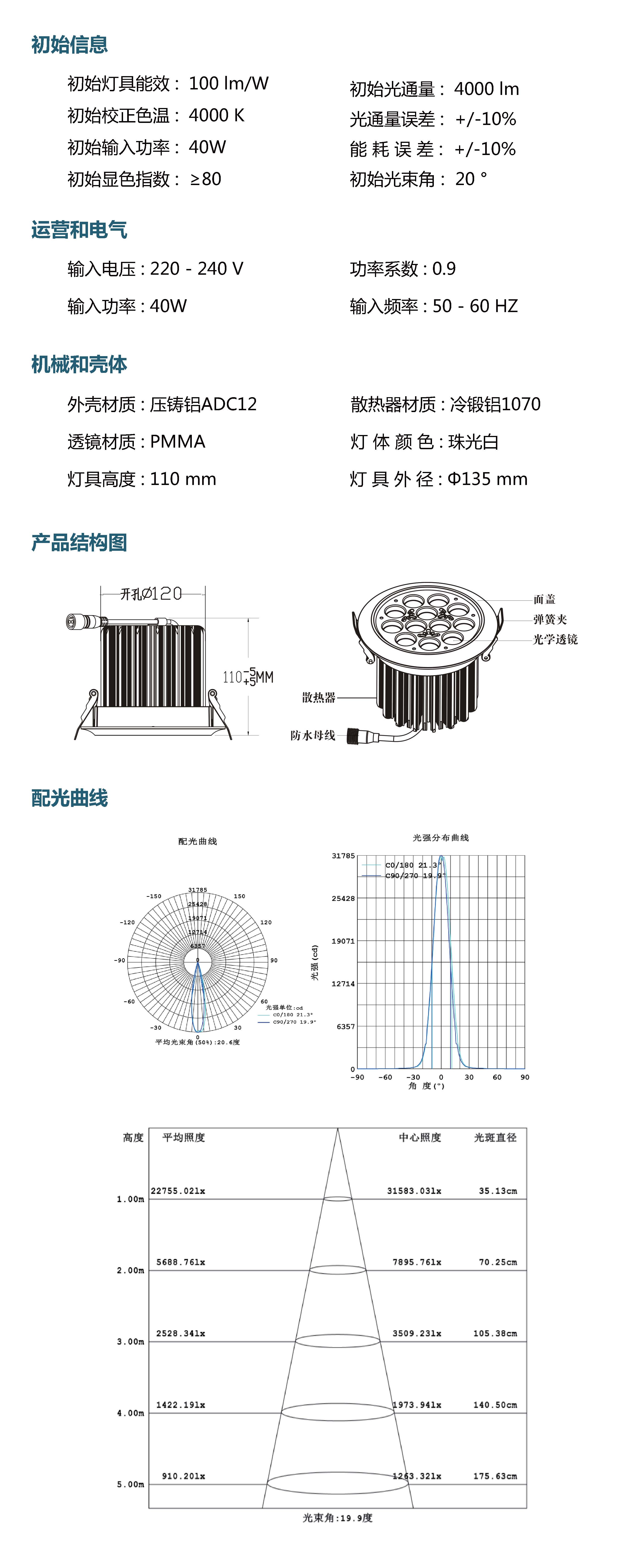 光   束  角: 20 °