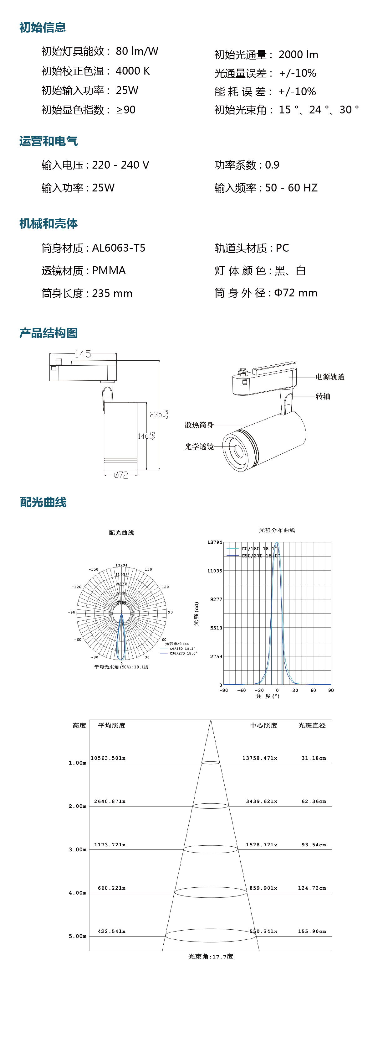 光 束 角: 15 °、24 °、30 °