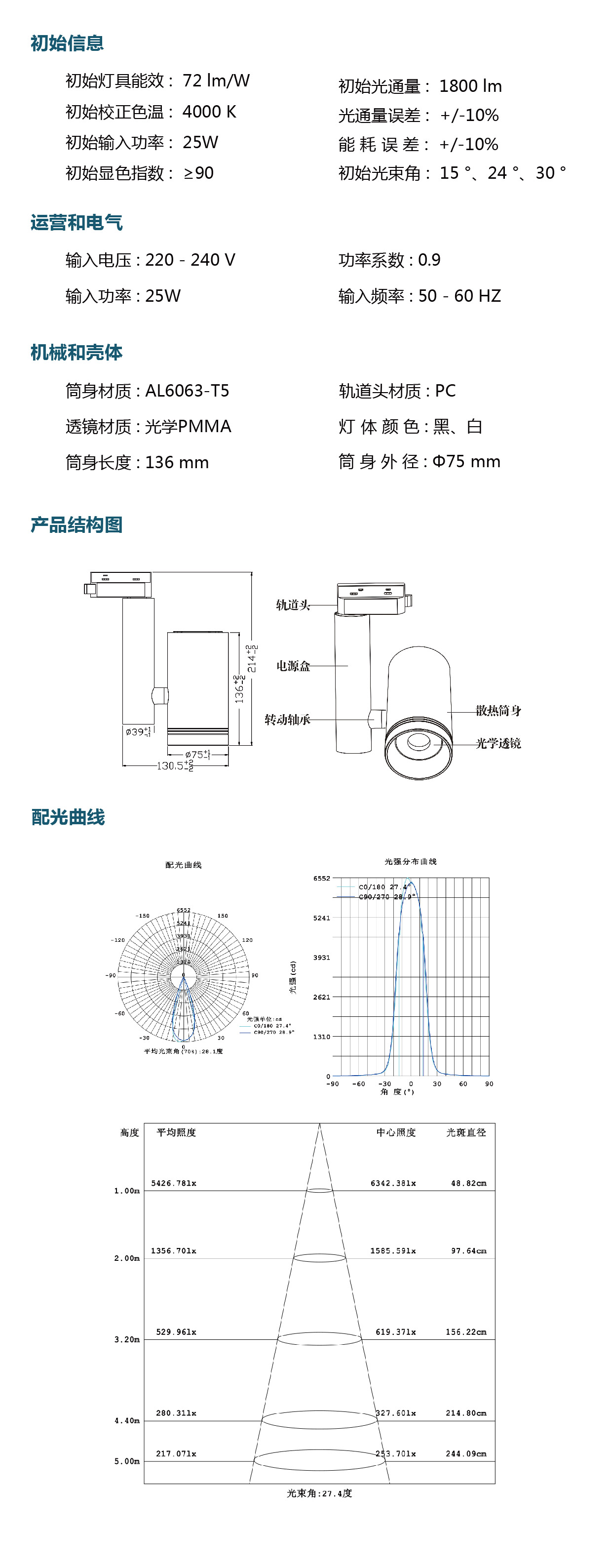 光 束 角: 18 ° 28 °